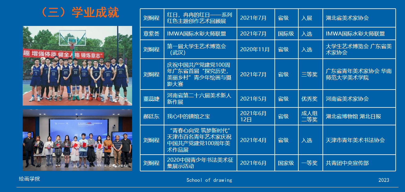 威廉希尔williamhill坚持为党育人,为国育材的力量,结合专业特点培养人才,从日常教育,课程思政,职业规划和榜样示范入手,深化“思政+艺术”育人模式,培养一批德智体美劳全面发展全能型美术专业型人才。