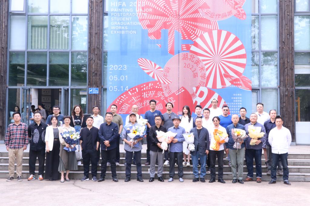 开幕式结束后,到场嘉宾在油画系教学楼前合影留念,随后在工作人员的引导下前往展厅观展。