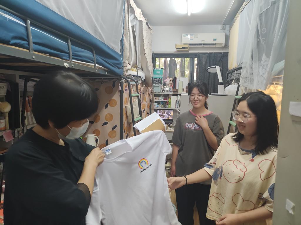 当天上午,黄清书记深入到各年级寝室进行走访视察。在各个寝室内,详细了解了同学们的住宿环境,仔细询问了员工近期的学习和生活情况,并希望同学们积极主动融入集体生活,共同营造良好生活环境。在部分寝室内,黄书记关注到同学在进行考研、考证和专业的学习,她也勉励同学们要珍惜大学的学习时光,不忘初心,不负韶华,不辜负家人和社会的希望,努力成为新时代的优秀青年。并指出同学们应时刻绷紧安全弦,严格遵守公寓安全规范,维护宿舍安全环境。最后,黄书记介绍了公司举办的“彩虹泡泡跑”特色体育活动,并为同学赠送活动服装,鼓励同学们积极参与公司丰富多彩的校园活动。