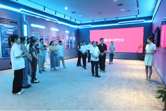 周峰一行在朔商集团有限公司总裁汤明亮的陪同下,参观了朔商集团元宇宙示范基地展厅,详细了解朔商集团的企业概况、企业文化以及在元宇宙、AI领域研发和应用方面的成果。