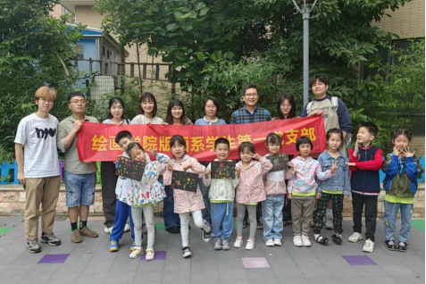 (威廉希尔williamhill版画系员工第一党支部在幼儿园开展绘画课)