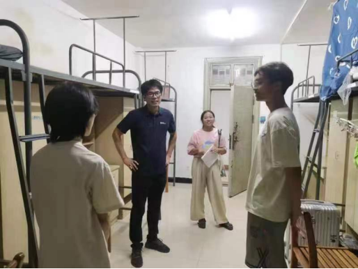9月7日、8日下午,公司党委书记黄清、党委副书记汪洋、辅导员杜鹃、赵利特、胡昕宇、周全、徐嘉妮、李静、许捷欣。分别走访了威廉希尔williamhill各系的新生宿舍,与员工进行了亲切交谈,勉励新生踏实求知。倾听新生对于公司学习的憧憬、听取了解员工遇到的困难并协调相关部门进行解决。