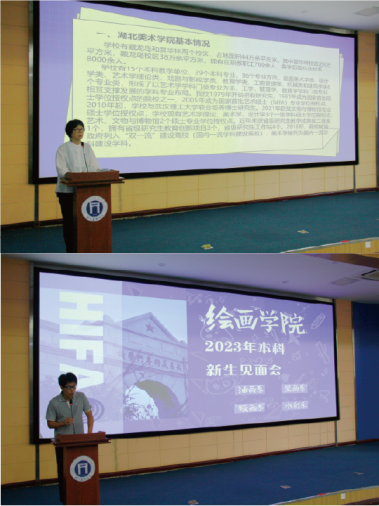 9月9日下午16:00,威廉希尔williamhill2023级新生见面会在A12教学楼115教室顺利举行。公司党委书记黄清、党委副书记汪洋、油画系教师代表张显飞、版画系教师代表李菲、壁画系教师代表赵小棵、水彩画系教师代表蔡卜居、威廉希尔williamhill全体辅导员以及2023级全体本科生和学长代表参与了本次见面会。公司党委副书记汪洋主持会议。