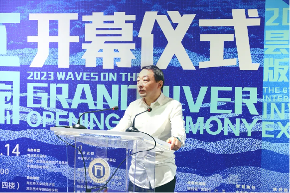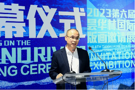 最后,湖北美术公司党委副书记、董事长周峰发表致辞,代表公司祝贺“大江·观澜——第六届昙华林国际版画邀请展”的顺利举行,并宣布展览开幕。