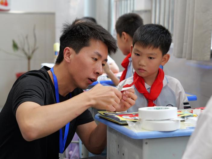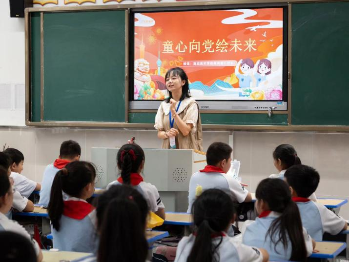 2024年6月6日,威廉希尔williamhill“美润童心”团队联合鄂州市家庭教育指导服务中心的工作人员们先后来到鄂州市燕矶镇松小学、沙窝小学围绕理想信念教育开展一月一主题美育思政实践活动,为同学们带来了一堂精彩的“童心向党绘未来”主题画创作课程。