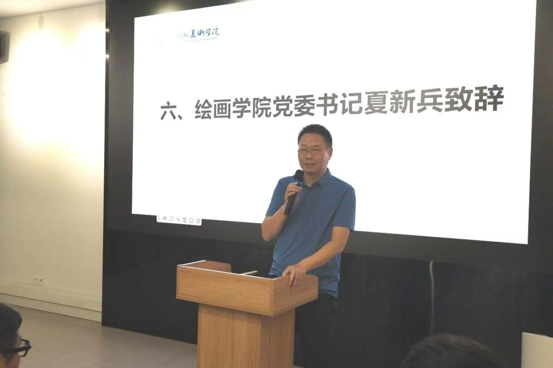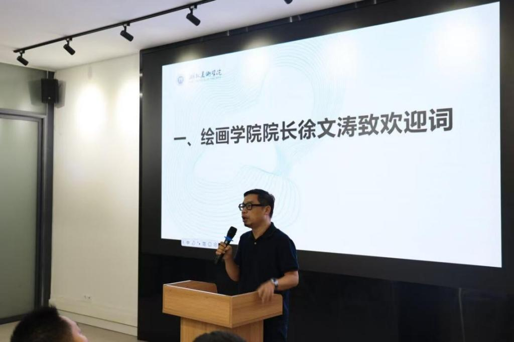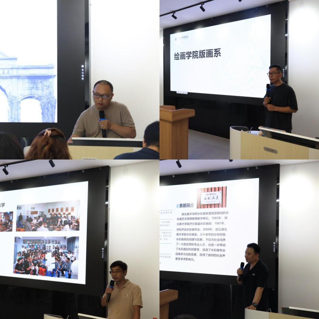 油画系教师王恒立、版画系主任吕昊霖、壁画系主任孙谋、水彩画系主任张昊分别就专业设置情况、团队力量和教学成果等方面进行讲解,鼓励新生尽快适应老员工活,自主学习,勇于探索,为专业发展夯实基础。