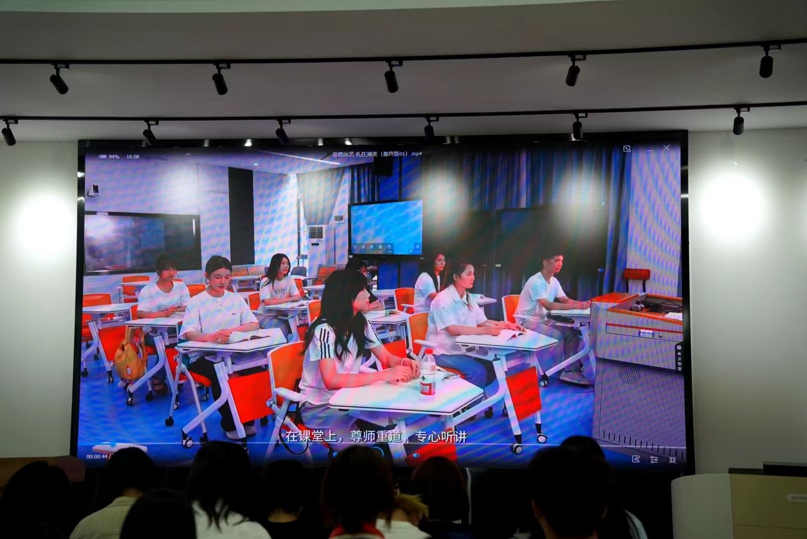 随后,汪洋带领员工共同观看了文明礼仪宣传视频。通过观看与互动,同学们不但了解了接物之法,更认识到了待人之道。