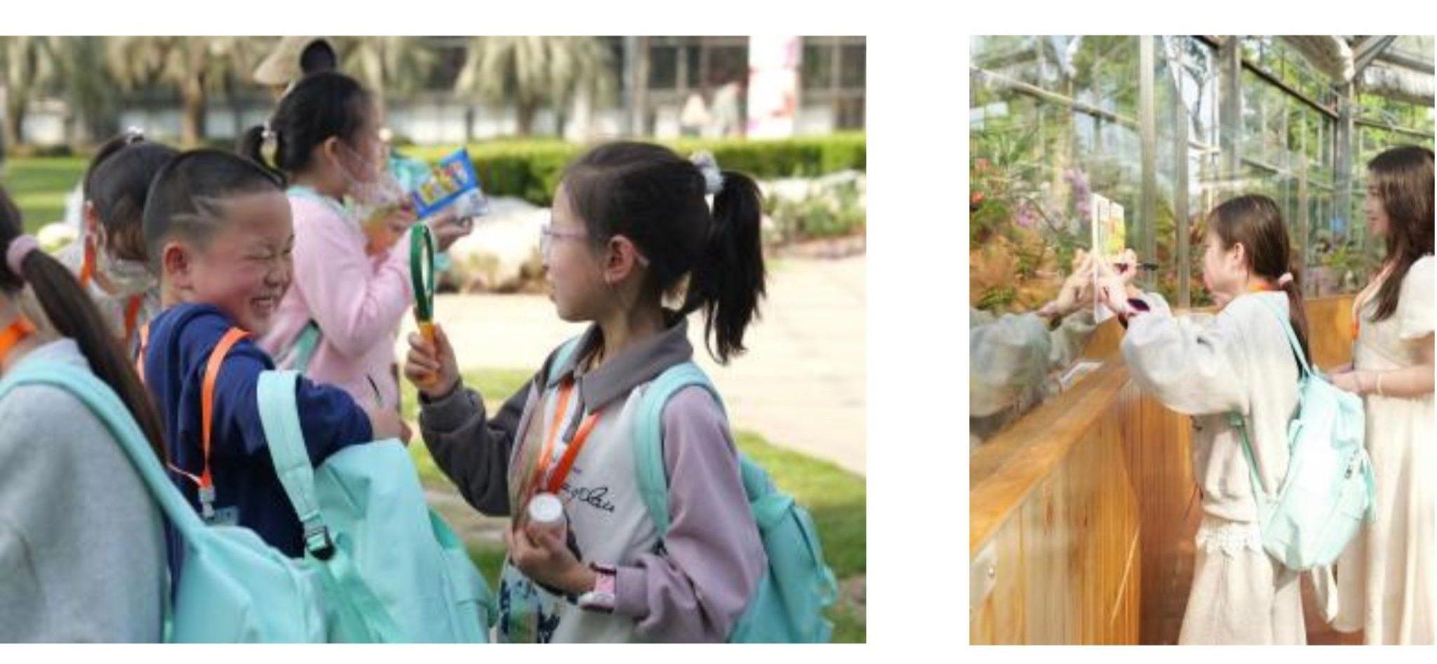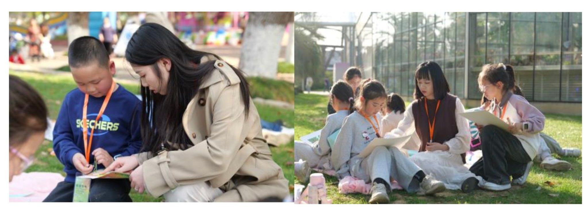 为了让孩子们更深刻地理解和感受节气之美,团队精心策划了沉浸式探索和写生活动。孩子们化身小侦探,在植物园中近距离观察各种植物的造型和色彩,寻找不同节气下植物的变化特征,并将这些观察到的细节转化成自己的绘画语言,记录在研学手册上。