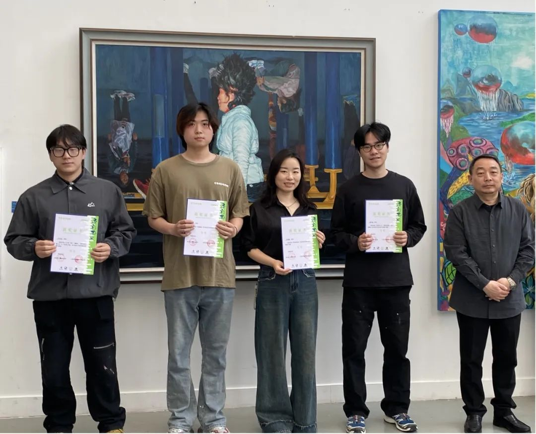 “2025年度马利艺术奖学金作品展”出席嘉宾、师生合影