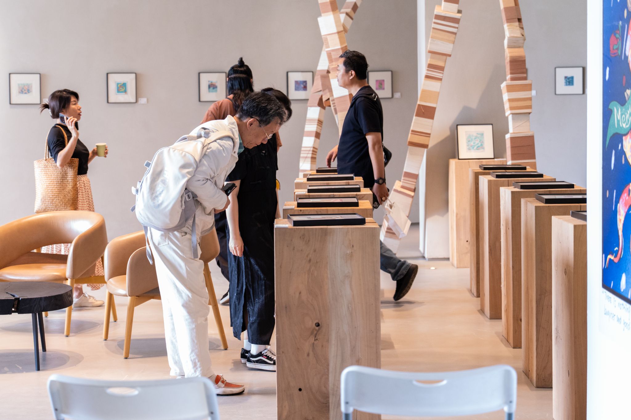 沙龙结束后,嘉宾与观众共同移步展厅,近距离欣赏来自不同时期、风格各异的藏书票精品。观众们或驻足细品,或拍照留念,在方寸之间感受艺术与阅读的完美融合。展览现场特别设置的艺术体验区,让观众得以亲身参与传统版画制作,体验藏书票创作的独特魅力。