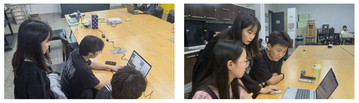 主讲老师聚焦LIBLIB平台展开“需求拆解——工具应用——创意优化”全流程教学。用一个“网易云音乐”logo为例,演示如何通过liblib平台的大模型,同时操纵Lora模型,以及教同学们如何使用ControlNet插件,来快速掌握LOGO设计的工作流程与方法。随后参加工作坊的同学们分为4个小组,各小组围绕“科技未来”“游戏创意”“玻璃质感”等相关主题,开展logo的创意制作。工作坊现场,各小组同学展开了热烈讨论。