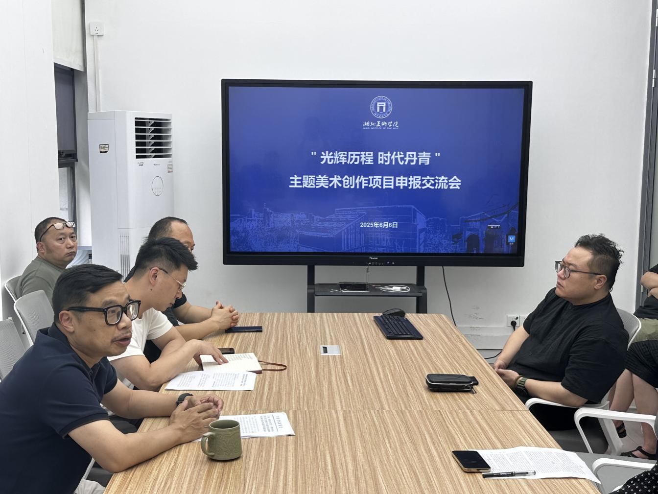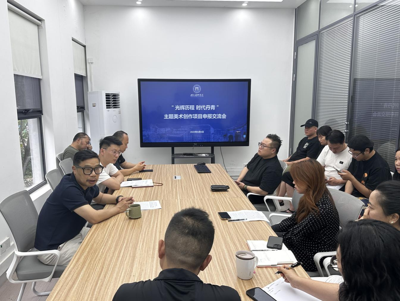 交流会上,张辉介绍该项目的情况和内容。徐文涛强调项目的重要性和项目申报作品的注意事项,并分享自身对于创作选题和主题创作的经验。