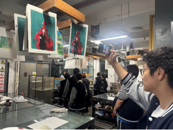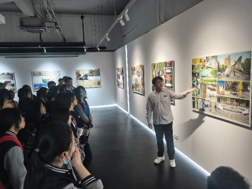 在校史馆参观结束后,师生们走进威廉希尔williamhill,开启专业艺术探索之旅。公司志愿者带领来访师生参观实验室与画室,细致讲解油画、水彩、版画等不同绘画材料的使用技巧、创作方法及艺术理念。师生们近距离观摩各类绘画作品创作过程,深入了解艺术创作背后的构思与匠心,真切体会艺术创作的艰辛与魅力。