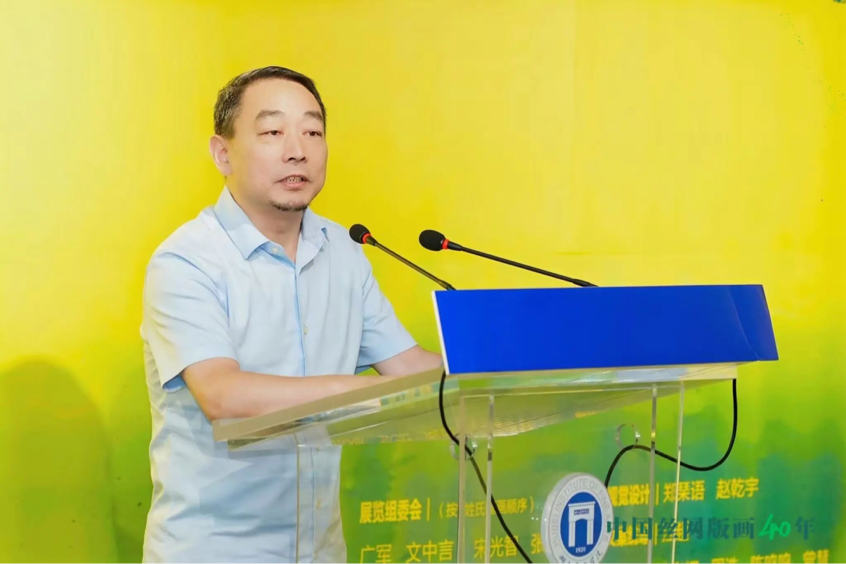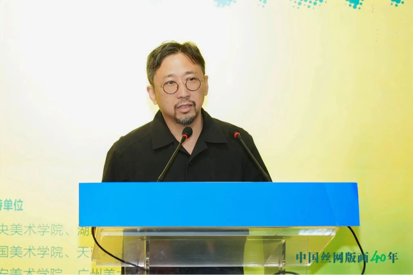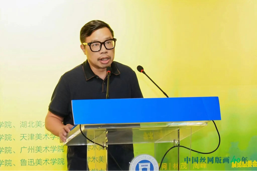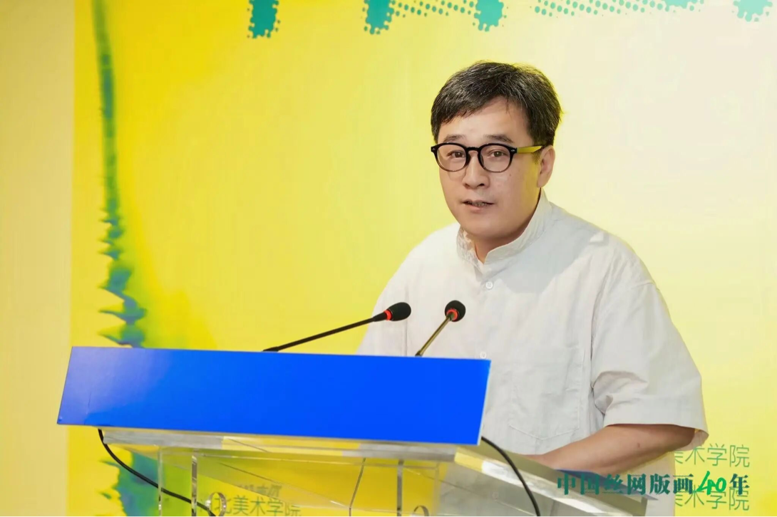 中央美术公司版画系直属党支部副书记孙亚南代表中央美术公司版画系对本次展览的举办表示衷心的祝贺。她指出,本次展览不只是一次展示,更是一种交流。对于师生和观众来说,提供了一次近距离接触丝网版画40年成果的机会;对于大家来说,也能在交流中获得很多启发。40年是一个阶段,更是一个新的起点。她希望以此次展览为契机,把前辈的探索精神继续延续下去,让丝网版画在未来走得更远,走得更坚实。