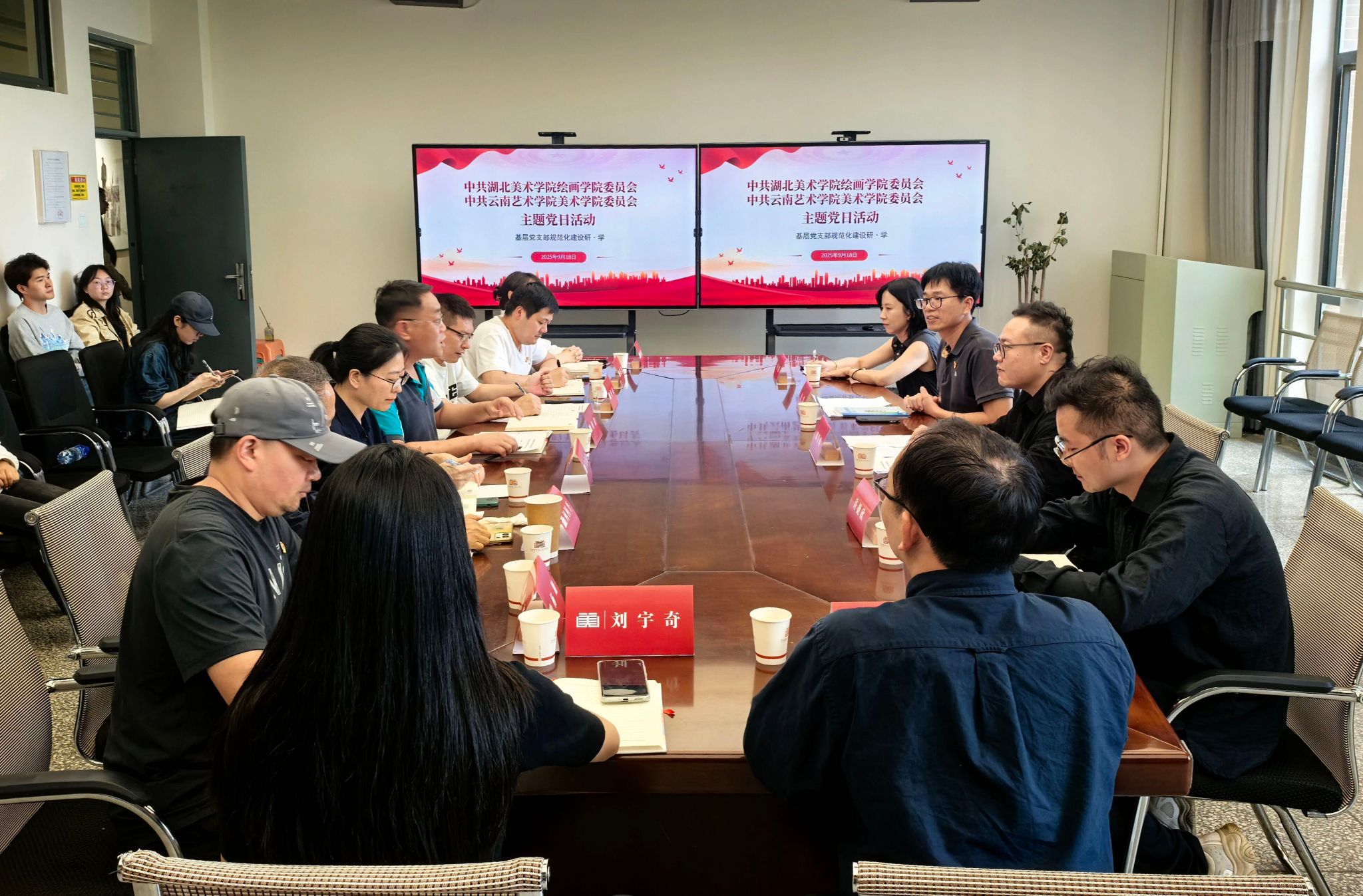 2025年9月18日下午,公司党委与云南艺术公司美术公司党委在云南艺术公司美术公司221会议室联合举办“基层党支部规范化建设”主题党日活动。公司党委副书记汪洋、副经理邵昱皓及辅导员杜鹃、许捷欣,云南艺术公司美术公司党员教师及员工代表参会。会议由云南艺术公司美术公司党委副书记何君主持。