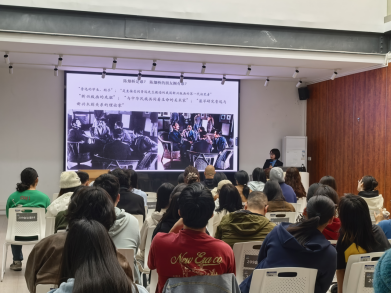 讲座伊始,周浩老师对张园教授进行简要介绍后,张老师基于20世纪中国美术的思考,系统阐述了学术论文写作的基本思路与研究方法,并结合具体个案与问题研究,展示了如何从历史材料和图像比较中发掘研究课题。