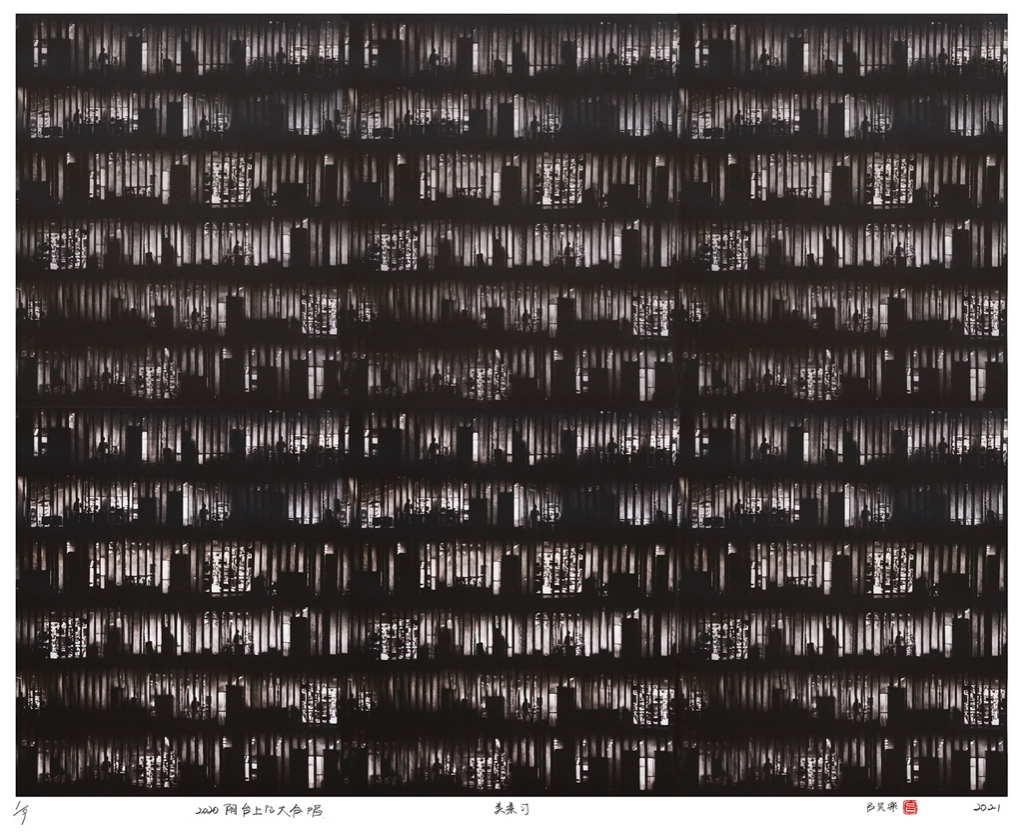 吕昊霖《2020阳台上的大合唱》铜版美柔汀 150X120cm 2022