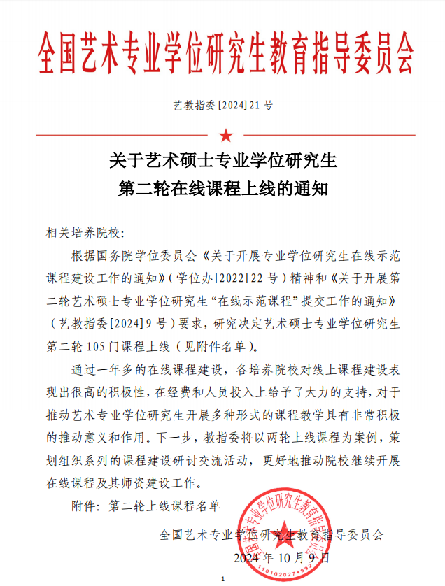 此次评选旨在提升全国艺术硕士专业学位研究生教育的质量与水平,并促进优质教育资源的共享。经过严格评审,徐文涛及其团队的课程凭借创新的教学理念、丰富的内容设计和高效的线上教学方法,脱颖而出,最终被选为示范课程之一。
