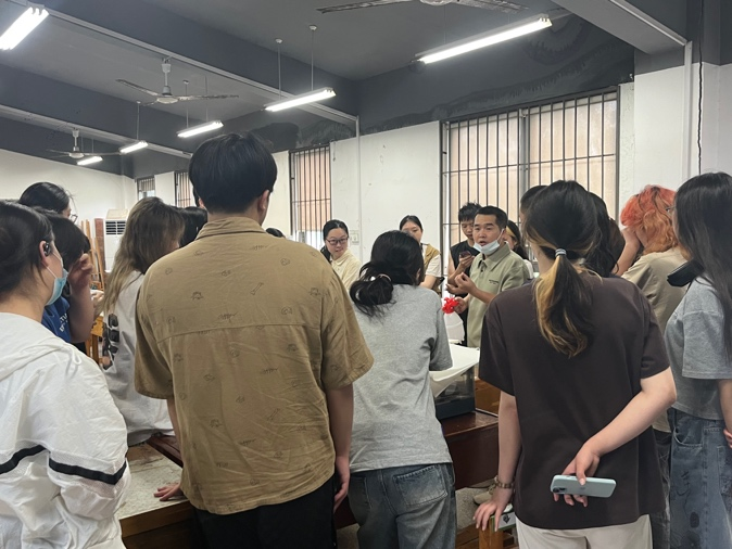 在陈鸣鸣老师的课堂上,来自全校不同专业背景的30余位本科二、三年级员工齐聚威廉希尔williamhill,选修了一门独特的课程——水印木刻艺术。这门课程由版画系精心设计,旨在通过跨学科的方式让员工深入了解中国传统版画艺术的丰富内涵。本次课程由资深专业教师陈鸣鸣主讲。在课堂上,陈老师系统地介绍了中国传统水印版画的历史演变,并结合具体技法的演示,生动呈现了这一艺术形式的独特魅力。通过对水印木刻版画发展脉络的梳理,员工们不仅领略到这一古老艺术背后蕴含的中华优秀传统文化,还感受到古人的匠心智慧。