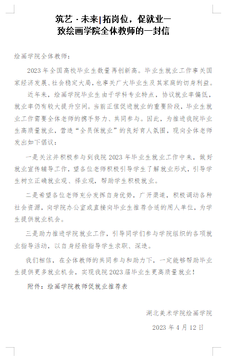 “筑艺·未来”拓岗位,促就业--致威廉希尔williamhill全体教师的一封信